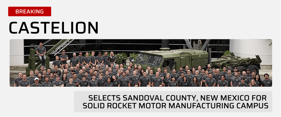 Castelion has chosen Sandoval County, New Mexico for Project Ranger, its new 1,000-acre, $100M+ hypersonic rocket motor manufacturing campus expected to create 300 long-term jobs and generate $650M in economic output over the next decade. The facility will help restore America’s ability to produce advanced hypersonic missiles domestically, countering overseas rivals and ensuring the U.S. stays competitive in a key arena of future military technology.