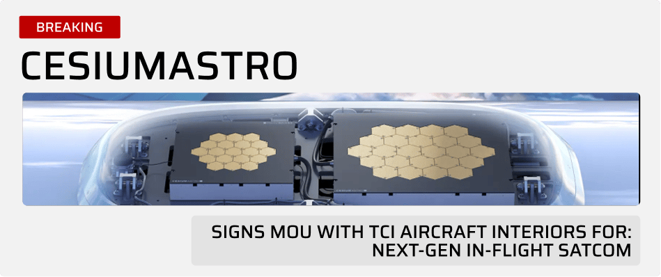 CesiumAstro just inked an MOU with TCI Aircraft Interiors — a global provider of aircraft cabin systems and in-flight connectivity solutions. At the heart of this collaboration is the evaluation of CesiumAstro’s Skylark antenna system, which leverages the company’s modular phased-array architecture to deliver simultaneous, electronically steered multi-beam connectivity — departing significantly from legacy mechanically steered antennas. 🙌 to the future of in-flight connectivity!