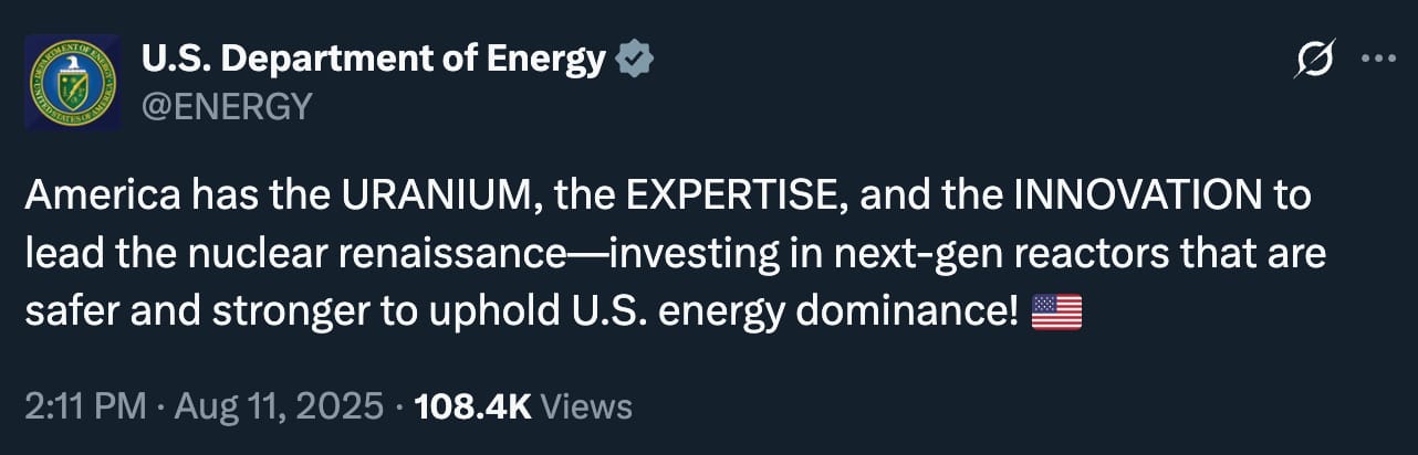 The Energy Department has been bull-posting about the “nuclear renaissance” on main for months now…. And last week, if you keyword-searched the phrase, you would have gotten hits from the Texas Governor, DOE, and a Wall Street bank.