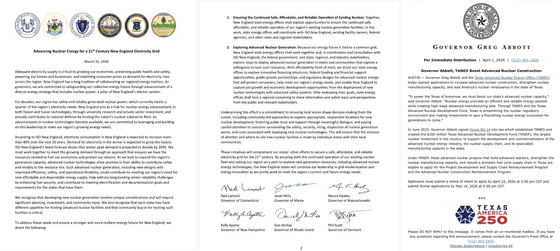 NEW ENGLAND: On Tuesday, the region’s six governors signed a joint commitment to keep their existing reactors online and advance new sites.